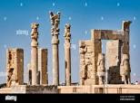 The monument as a whole was a massive structure with a hall between two enormous doors in the west and east. The centre halls' columns stood 1612 metres tall. The capitals were designed in the shape of two bulls. To the south there was a third entrance. Visitors might continue on from here to the throne room or Apadana.